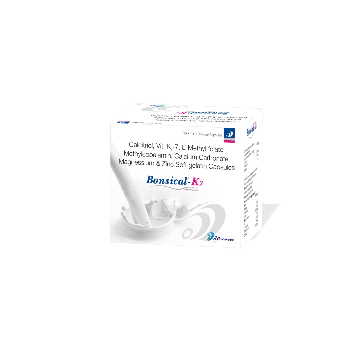 COMPOSITION: Each Soft Gelatin Capsule Contains Calcitriol 0.25 mcg + Calcium Carbonate 1250 mg + Vitamin K2-7 – 45 mcg + Mecobalamine 1500 mcg + Elemental Zinc 7.5 mg + Elemental Magnesium 50 mg + L-Methyi Folate 800 mcg Softgel Cap.